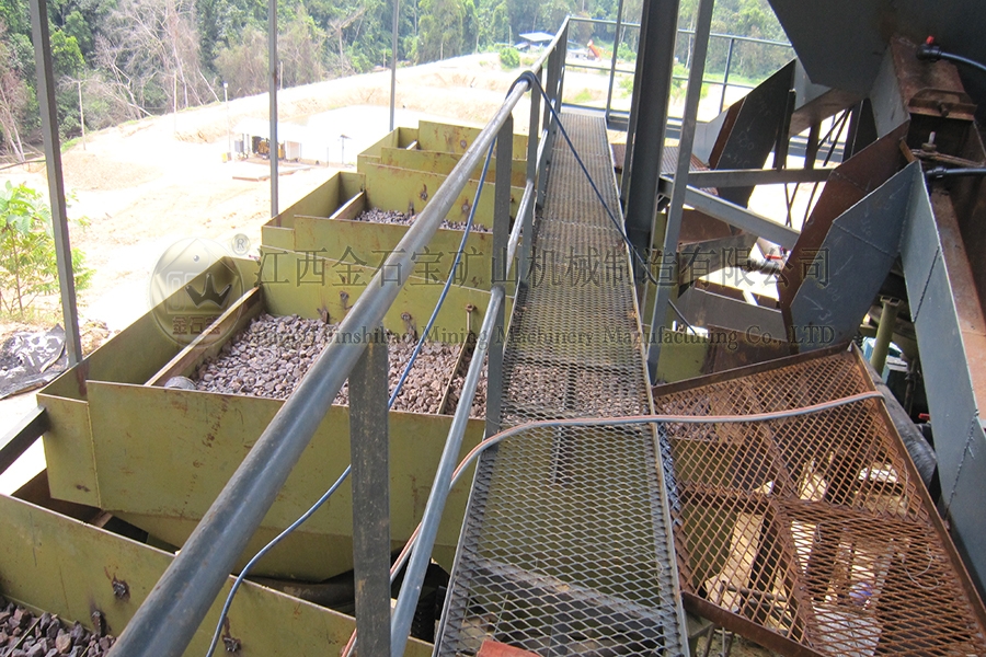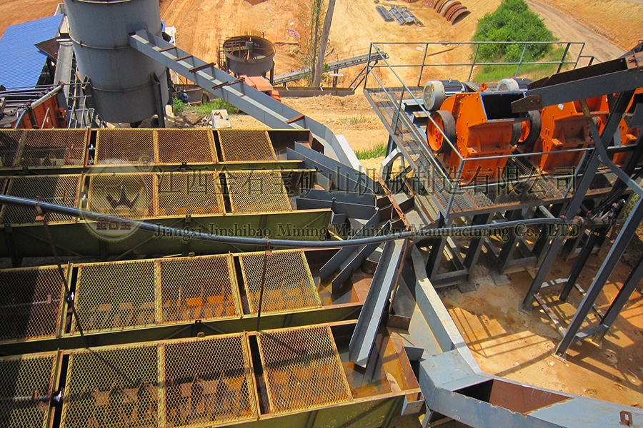 猛矿重选案例:设备有鄂破-圆筒洗矿机-直线振动筛-槽式洗矿机-跳汰机-螺旋洗沙机