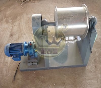 本机由电机、减速机、磨机筒体、轴承座、皮带轮、控制柜等部件组成,磨机筒体内部充满一定的研磨介质(氧化锆球、聚氨酯球或轴承钢球等),球磨机工作时,筒体内的研磨介质和物料一起随筒体转动提升一定高度,由于重力作用而脱离筒壁沿抛物线下落,物料在研磨介质的冲击研磨滚动和滑动产生的摩擦和剪切作用下达到粉碎或混合物料的目的。