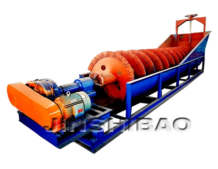 洗砂机转子采用中心结构,螺旋叶片安装在中心轴上;电机带动减速机,减速机联动中心轴。借助固体颗粒的比重不同,因而